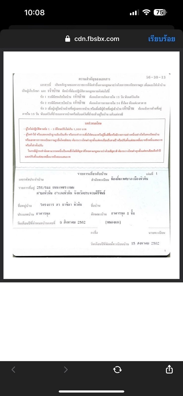 3. 콘도 계약서 4. 콘도 집주인 집 등록증 (house registration) 5. 집주인 주민등록증 (ID 카드) 6. 전기세 납부 영수증