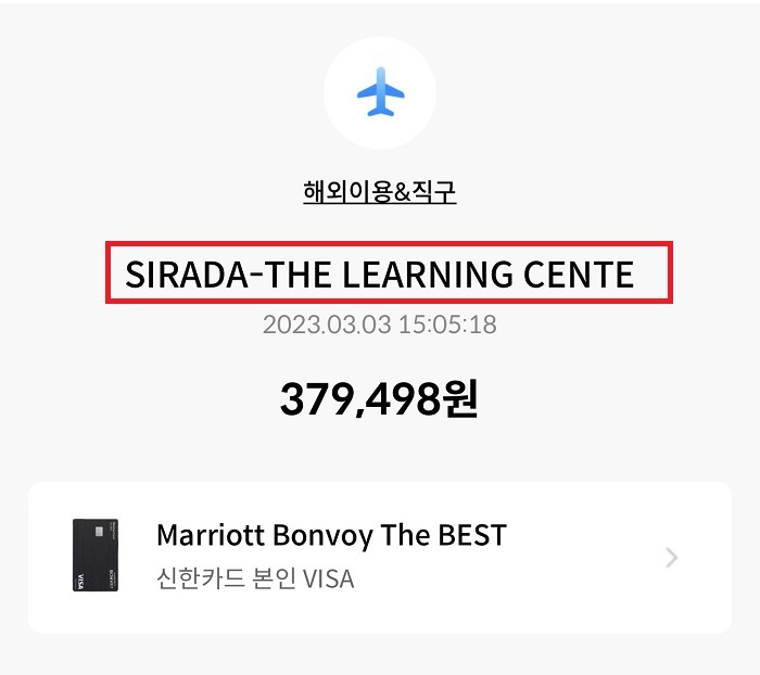 | 03월 03일 | 어학원 방문 및 남은 금액 카드 결제 (10,000 바트) |