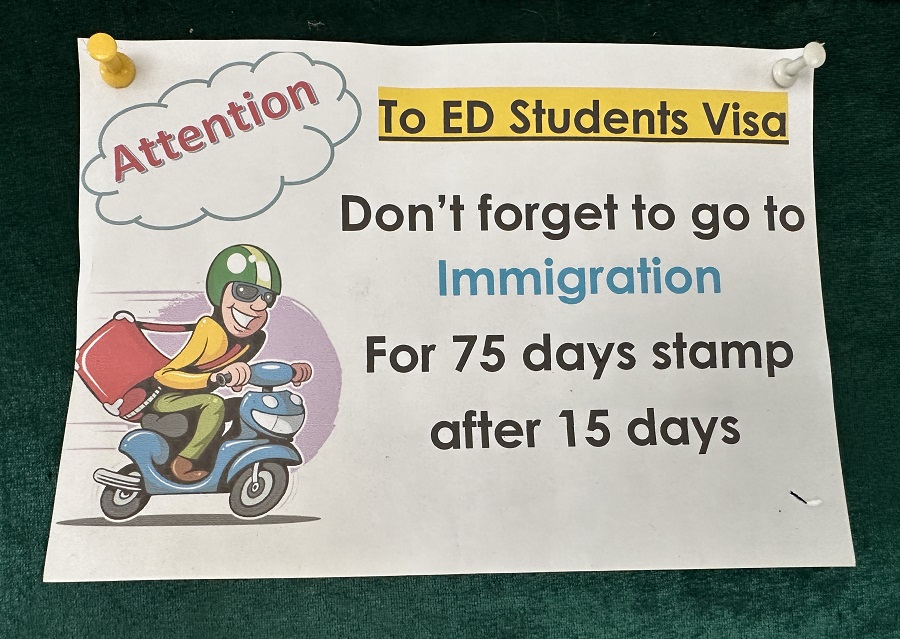* 태국 ED 비자 (학생 비자)는 우리가 알고 있기로 1년이지만 이는 최대 1년이라는 뜻이에요. 실제로는 매 3개월마다 연장을 해야하며 최대 1년까지 받을 수 있다,라고 이해하셔야 합니다. 단 태국 어학원의 경우 3/3/3/3 개월로 최대 1년이라는 뜻이고 태국 대학교 어학당의 경우는 3/6/3 등으로 두 번 또는 세 번의 연장으로 최대 1년이에요.