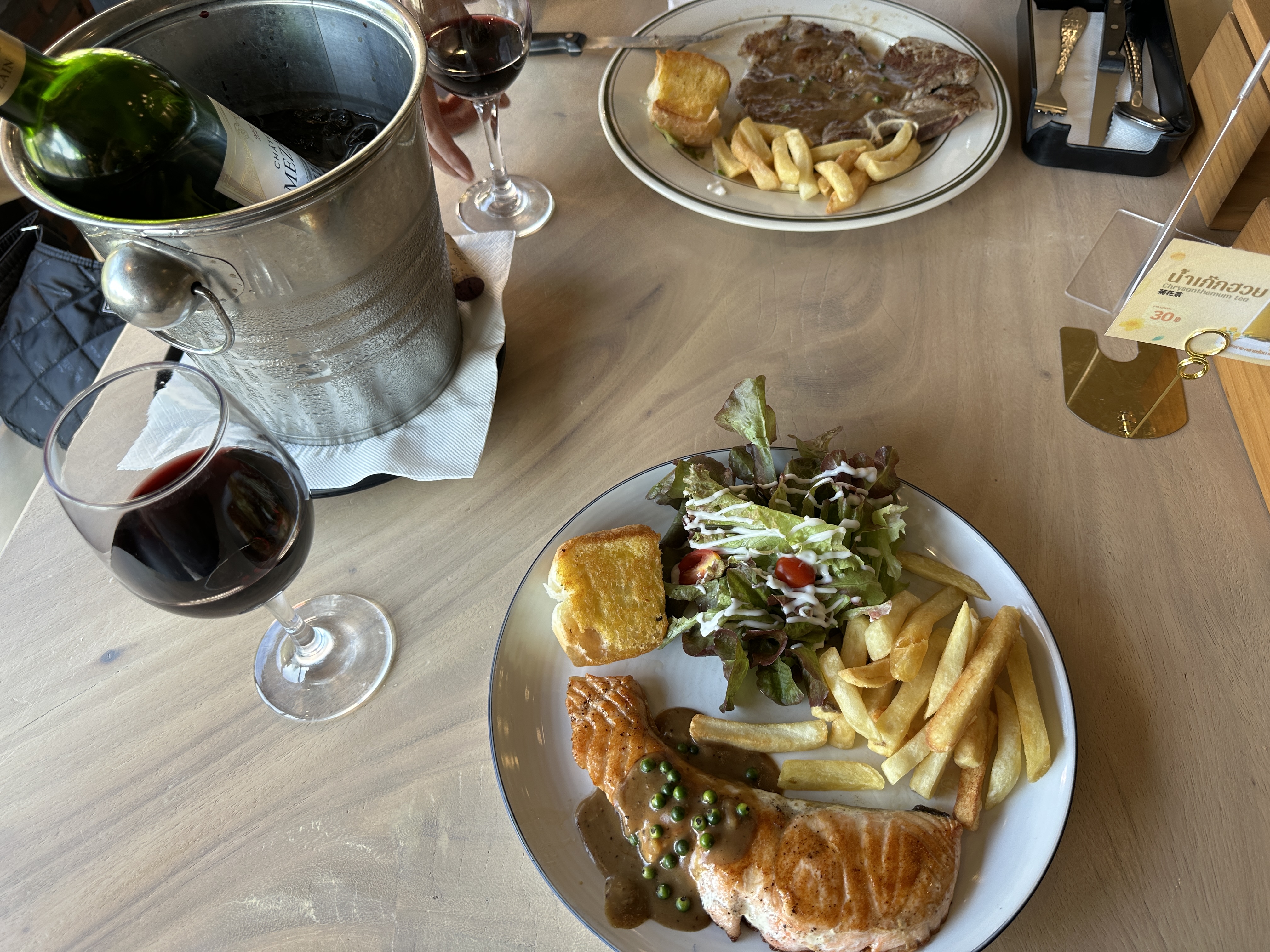 파타야 제 최애 레스토랑 중 하나인 ae&ek steak 파타야 레스토랑이에요. 보통은 맥주를 마시는데 이 날은 와인을 마셨지요.