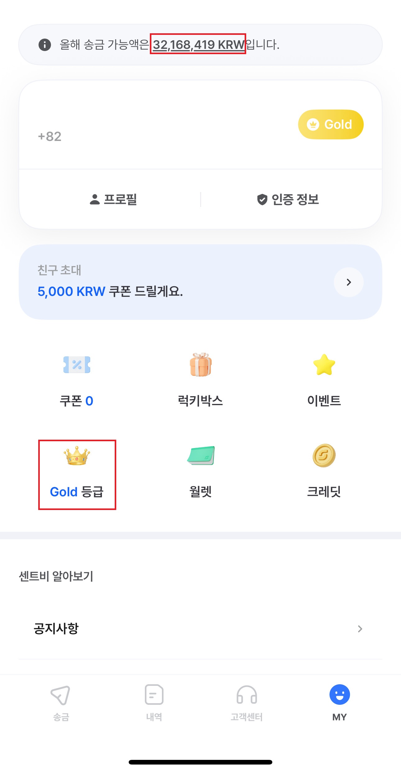 5월에 1700만원 이상 송금해서 골드 등급 (해외송금 수수료 무료)이 됐어요. 6개월 누적 1,700만원 이상 해외송금하면 해외수수료 무료입니다. 기타 해외 송금 수수료 무료로 받는 방법은 친구초대로 가입하는 방법도 있어요.